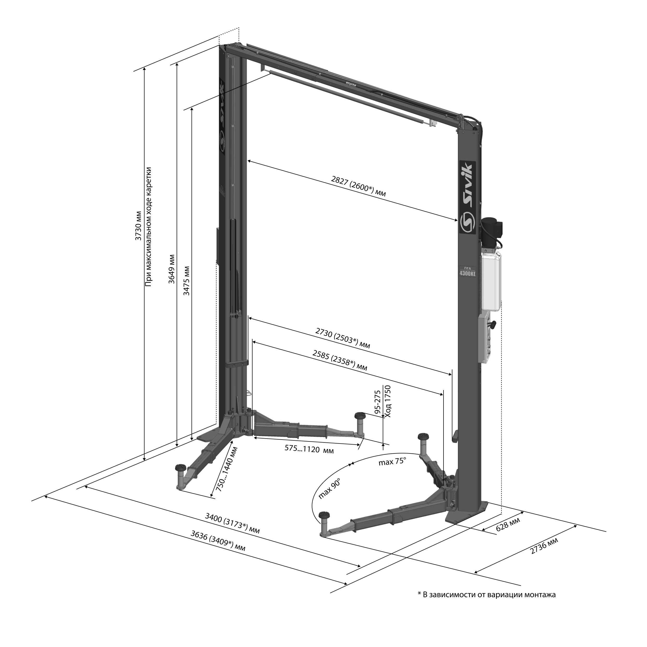 • Подъемник можно установить в двух вариациях: с увеличенной шириной проезда 2585 мм и со стандартной шириной проезда 2358 мм