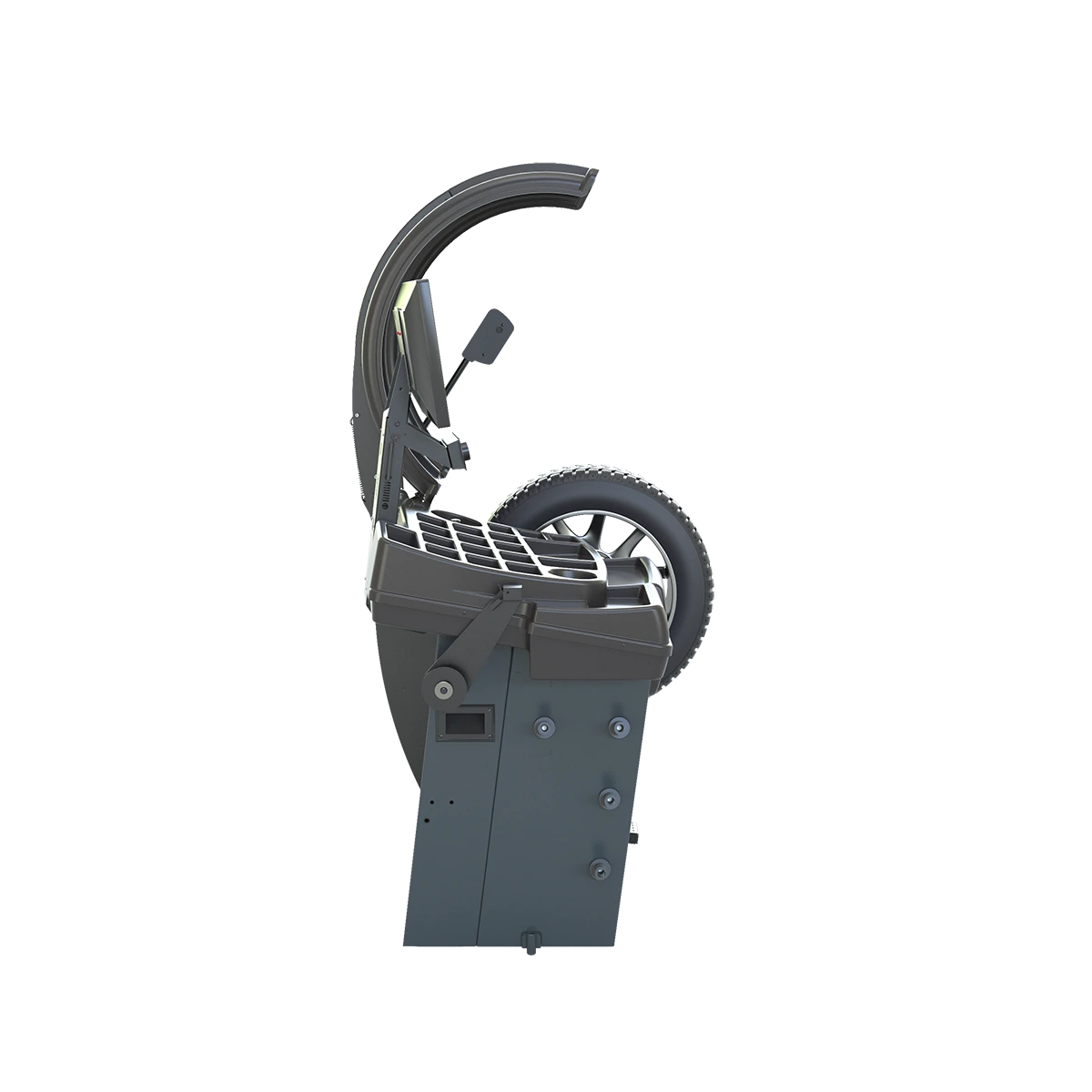 Станок балансирует экстремальные грязевые колеса (при открытом кожухе до 39” , при закрытом кожухе до 37”)